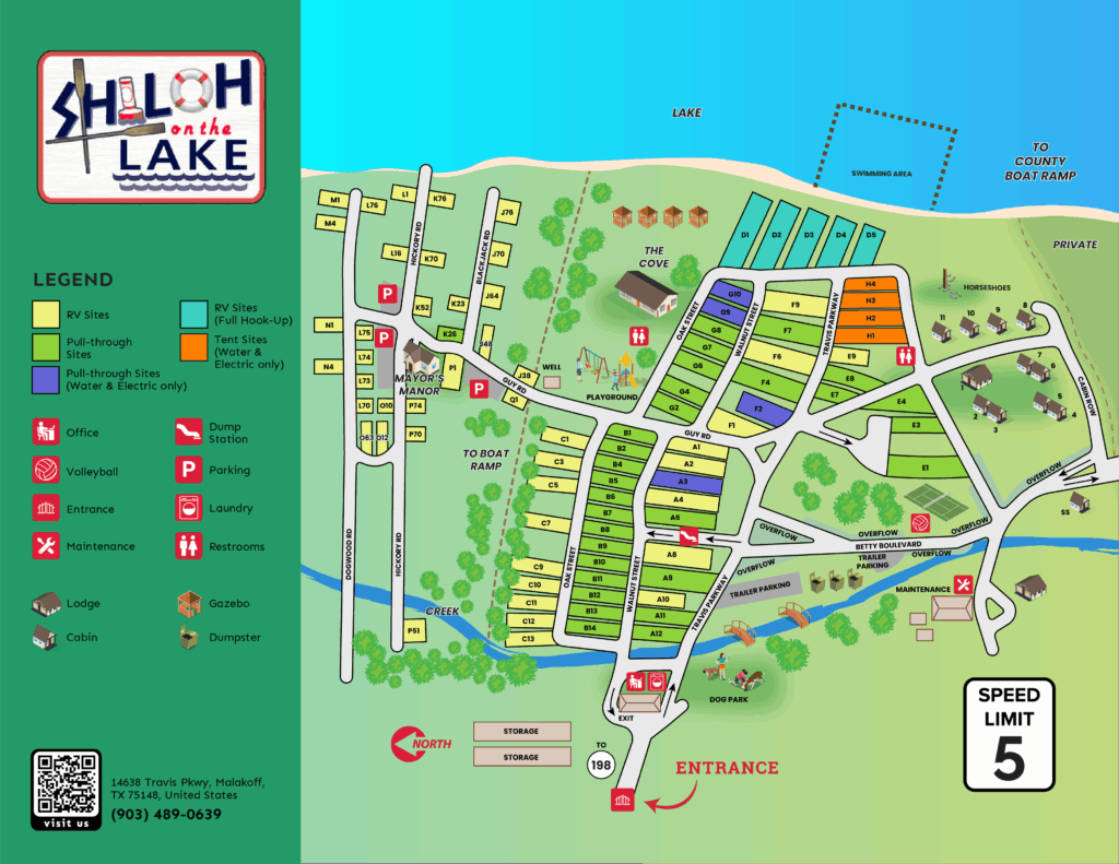 with the understanding that he/she does hereby release Shiloh on the Lake, its officers, and employees of all liability for loss or damage to property and injury to his/her person arising out of his/her use of the park facilities, and agrees to indemnify Shiloh on the Lake, its officers and employees, against claims resulting from loss or damage to property or injury to the person of any member of the family or guest of the registered person arising out of the use of the resort facilities. Camping and exploring the outdoors and lake inherently include risks including but not limited to uneven terrain both in and out of the lake, water hazards, naturally occurring wildlife, and other dangers. Guest hereby acknowledges and accepts such risks for himself/herself and those accompanying him/her. If you should need assistance in the park, or have any problems