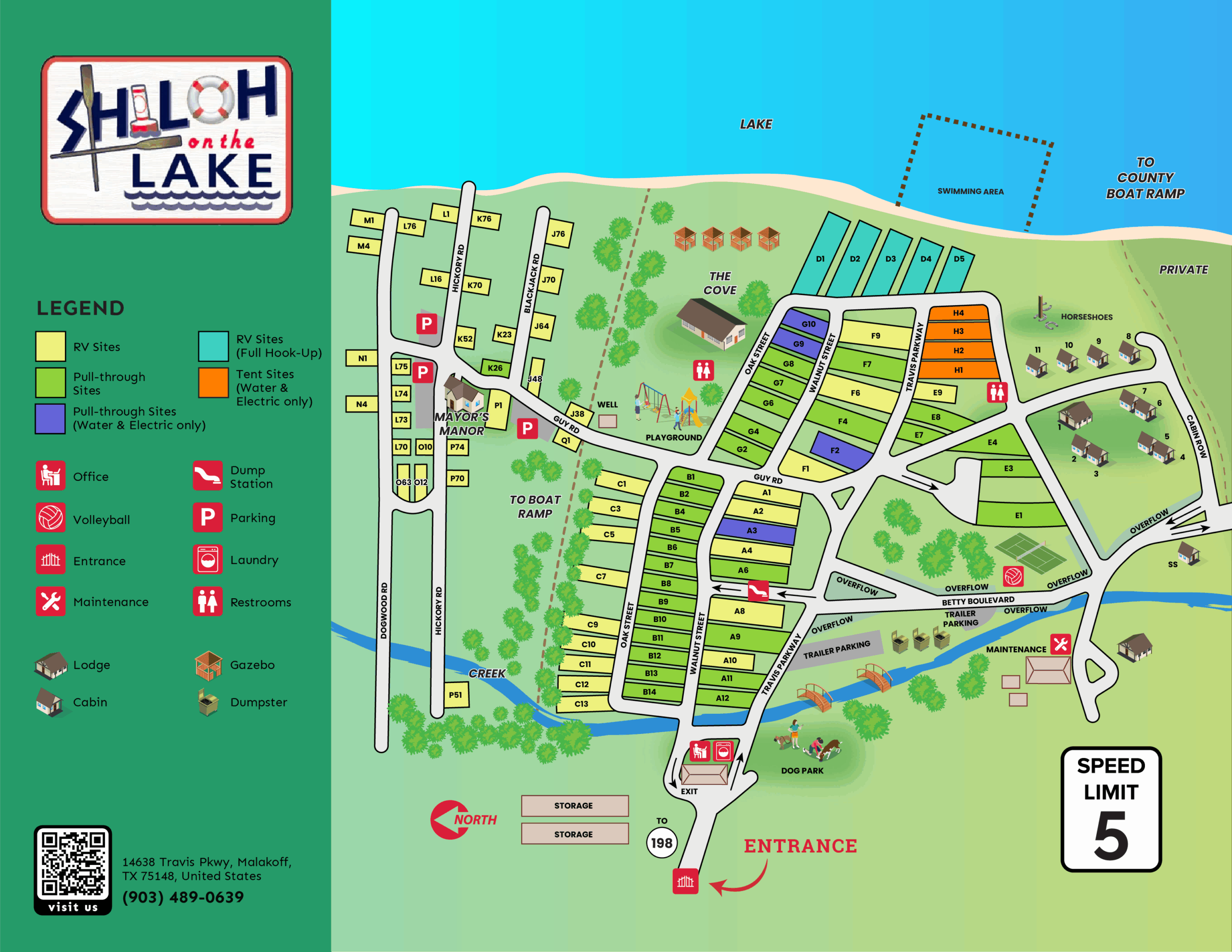 SPEED LIMIT: Drive slowly – watch out for all pedestrians and children! The speed limit is 10 MPH in the park.